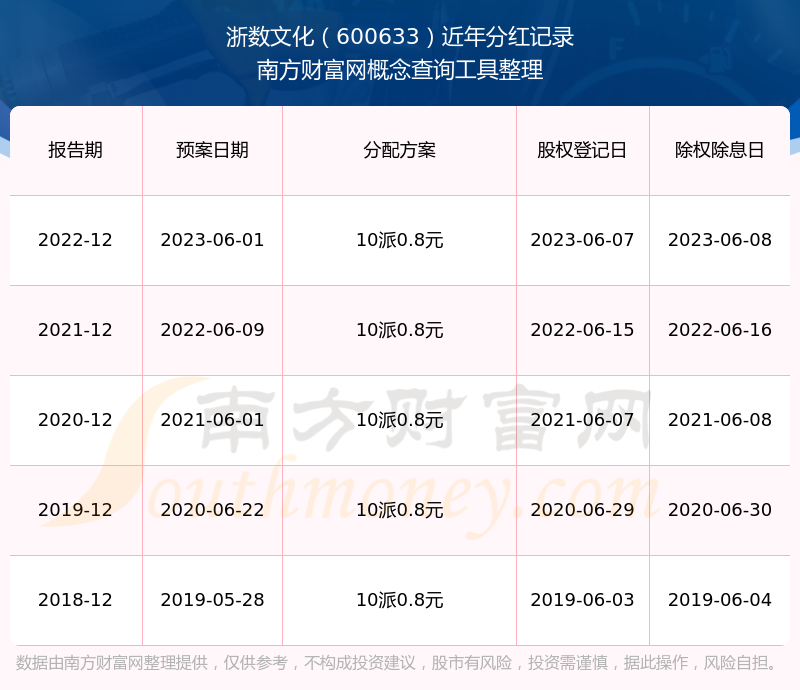 浙數(shù)文化最新一次公布的分紅方案:10派0.8元。