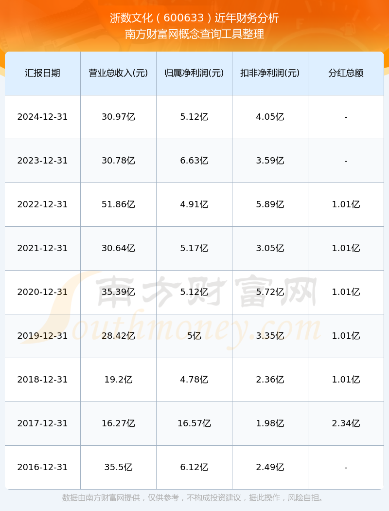 近年浙數(shù)文化分紅派息情況如下表所示: