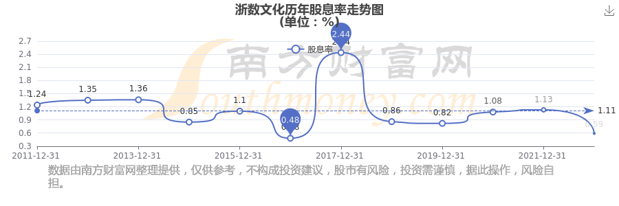 浙數(shù)文化歷年股息率走勢如下圖: