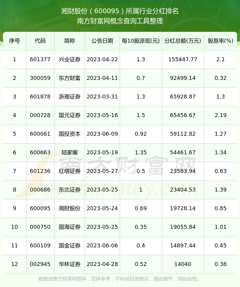二、湘財(cái)股份600095行業(yè)分紅排名