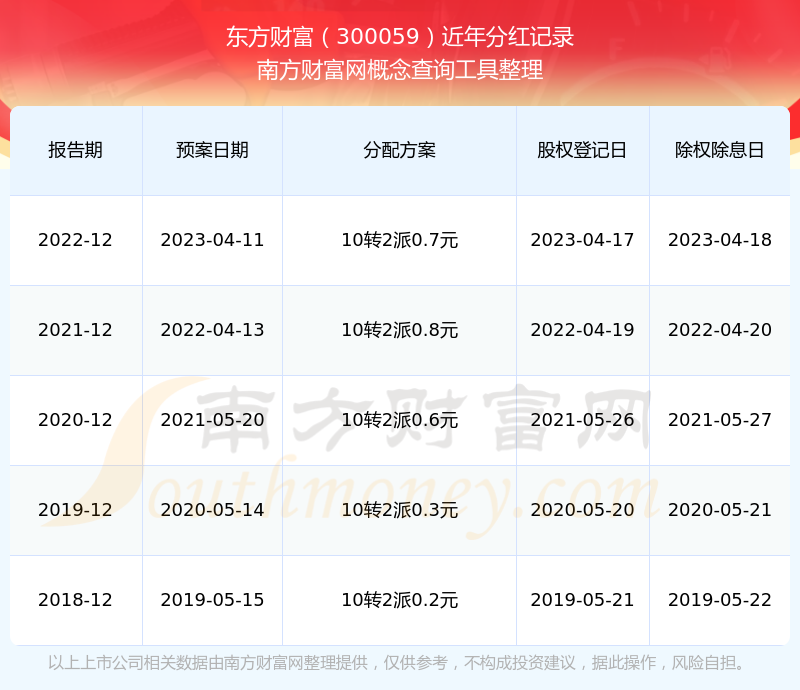 東方財富最新一次公布的分紅方案:10轉(zhuǎn)2派0.7元。