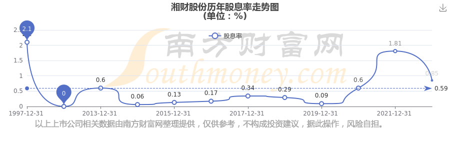 湘財股份最新一次公布的分紅方案為10派0.69元。本次權(quán)益分派股權(quán)登記日為2023年5月29日,除權(quán)除息日為2023年5月30日,派息日為2023年5月30日。