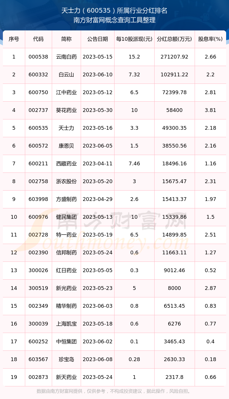 二、天士力600535行業(yè)分紅排名