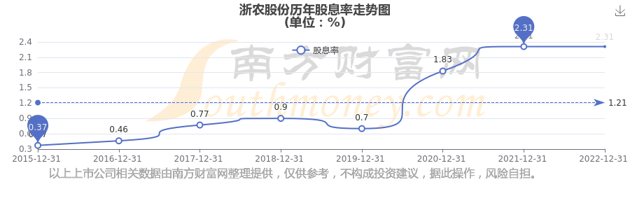 浙農(nóng)股份歷年股息率走勢如下圖:
