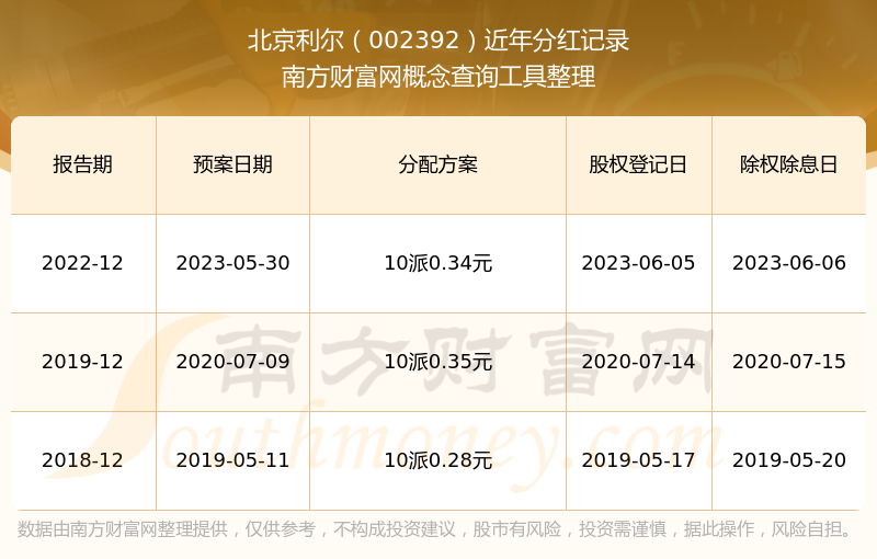 北京利爾最新一次公布的分紅方案為10派0.34元。本次權(quán)益分派股權(quán)登記日為2023年6月5日,除權(quán)除息日為2023年6月6日,派息日為2023年6月6日。