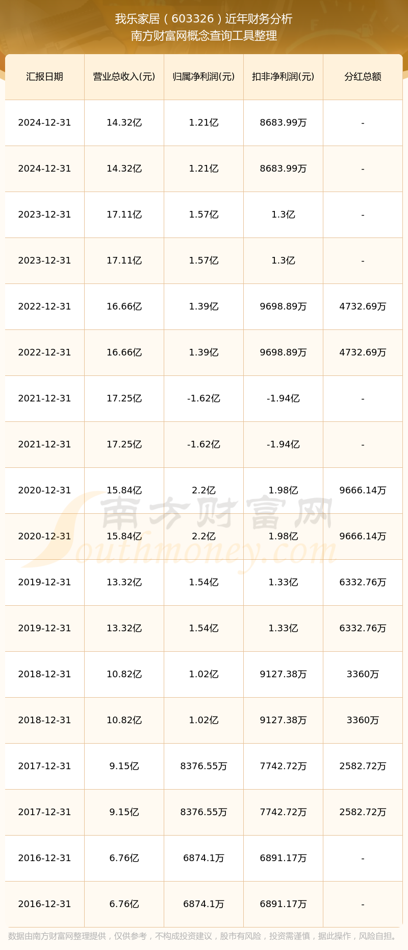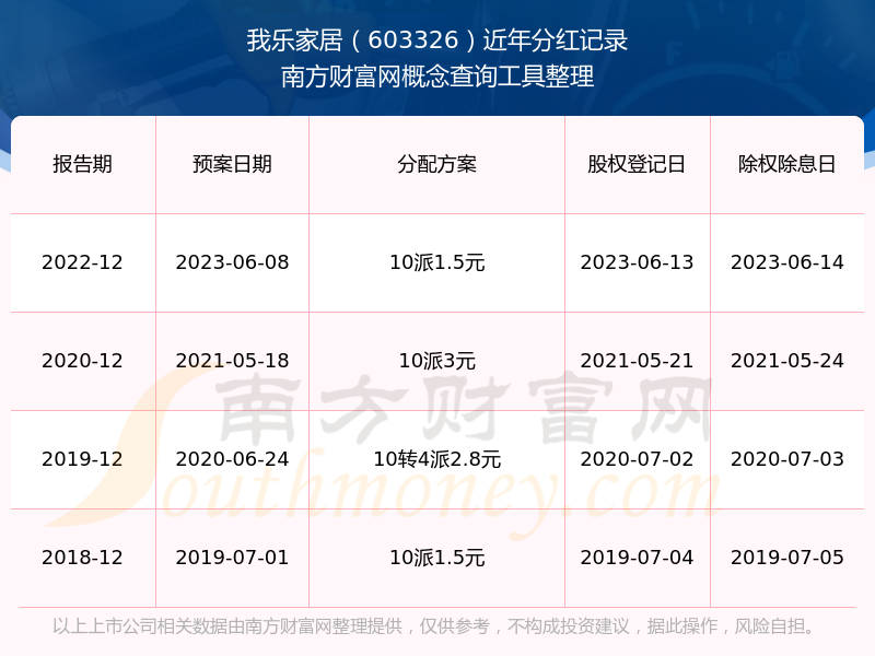 我樂家居歷年分紅派息情況如下表所示: