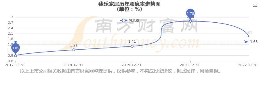 我樂家居歷年股息率走勢(shì)如下圖: