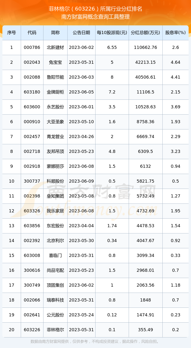 二、菲林格爾603226行業(yè)分紅排名