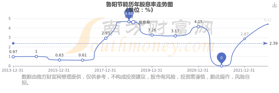 近年魯陽(yáng)節(jié)能年度股息率走勢(shì)如下圖: