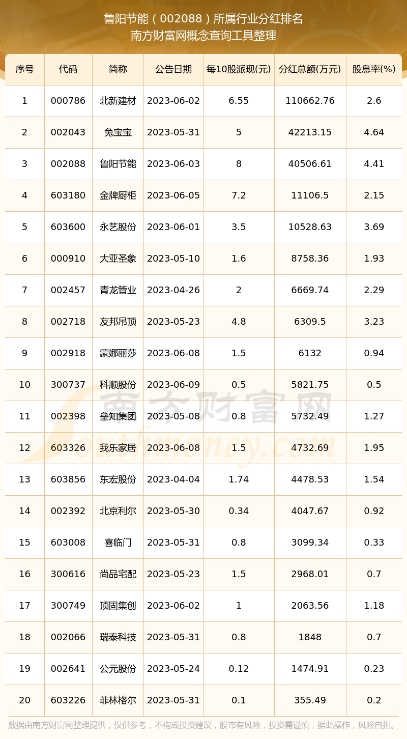 二、魯陽(yáng)節(jié)能002088行業(yè)分紅排名